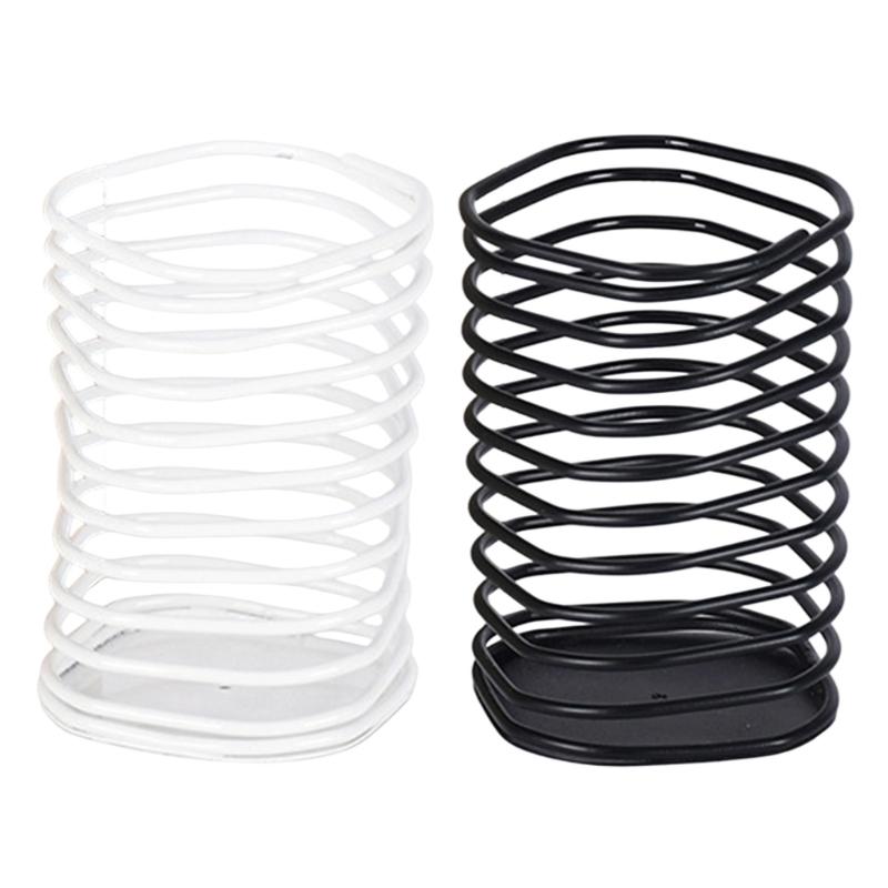 Experience innovative desk organization with our hollowed metal spring like pen stand, featuring unique square design that breaks away from traditional cylinders, adding artistic charm to any workplace while securely holding pens and other writing essential.