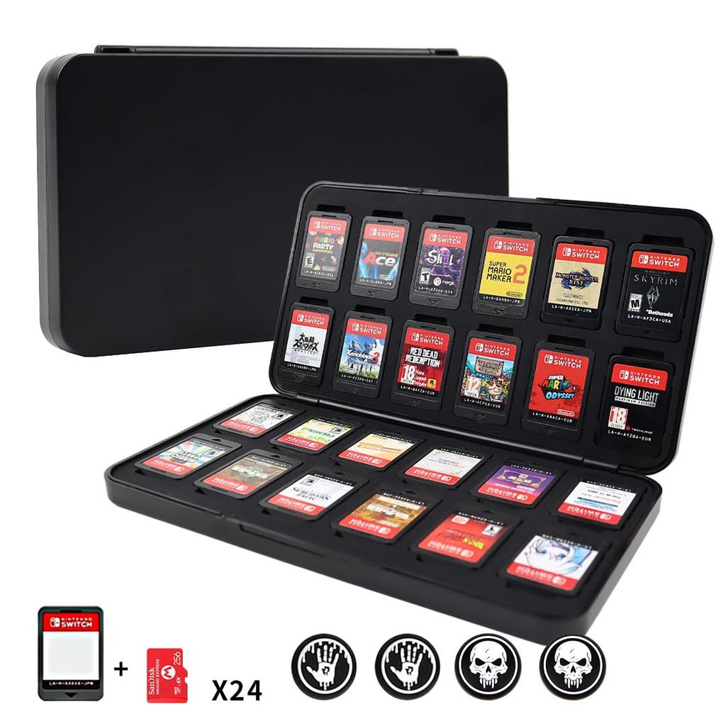 Are you struggling to store your Nintendo Switch games and SD cards? We've got the perfect solution for keeping your precious games and data safe and ready for action. This 24-card case for Switch is the ideal choice for organizing your game cards and SD cards. Its lightweight and compact design makes it easy to take with you when traveling or on the go. The included four Joy-Con stick covers improve grip while playing. Crafted from high-quality materials, this Switch cartridge case protects your game cards from scratches and dust. Its slim design yet large capacity of 24 cards makes it the perfect case for your Switch or Switch 2 games. It can also be used as an SD card case to organize and store your important data. We're passionate about creating products that support the best gaming experiences for gamers. This Switch memory card case features carefully selected materials and a practical design. With this Switch storage case, you can easily carry your favorite games with you at any time.