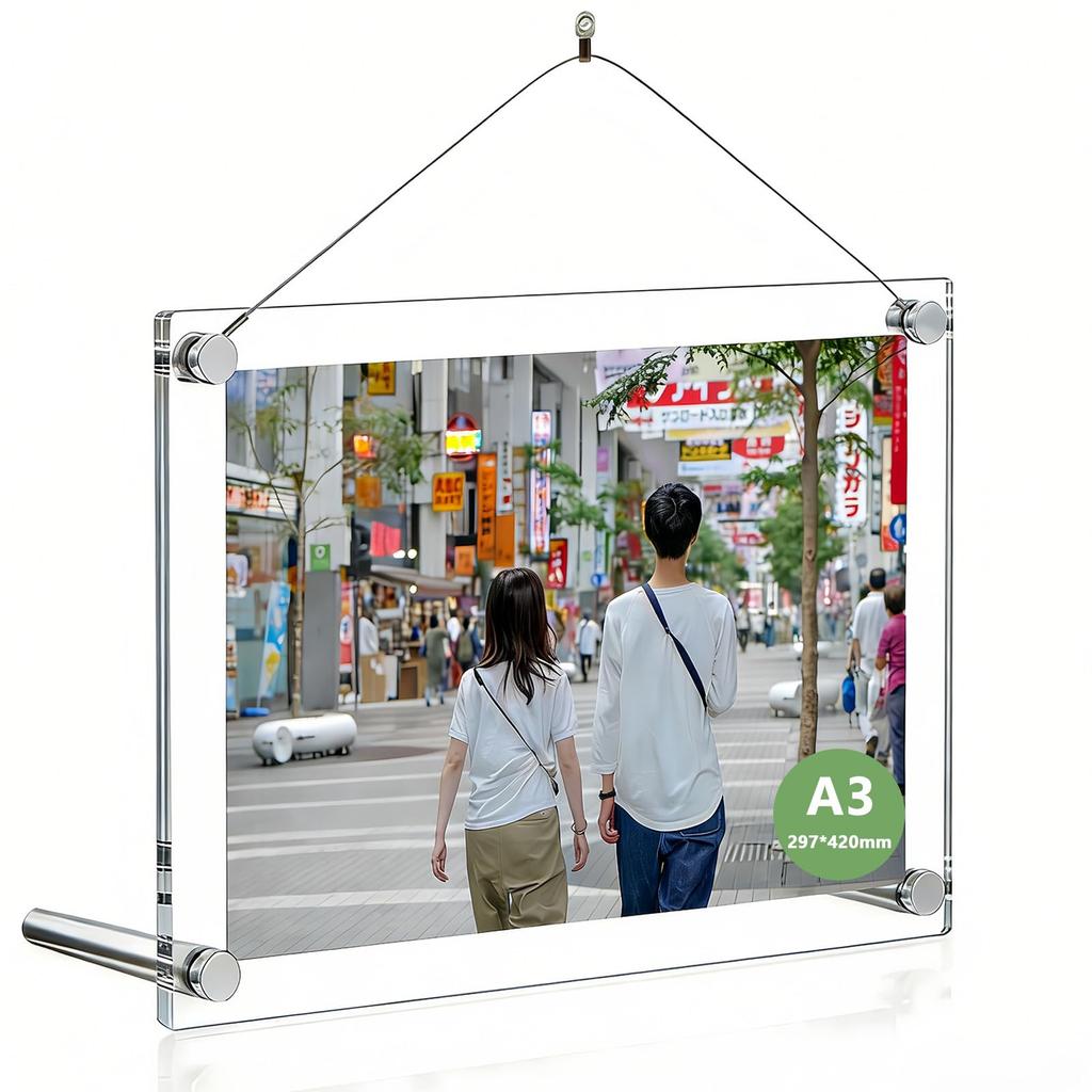 CraftoNova Clear Acrylic Photo Stand Wall Landscape Portrait Poster Picture Stand 297 X Frame, & Mount, & Compatible, 2-Sided Display, Frame, (A3