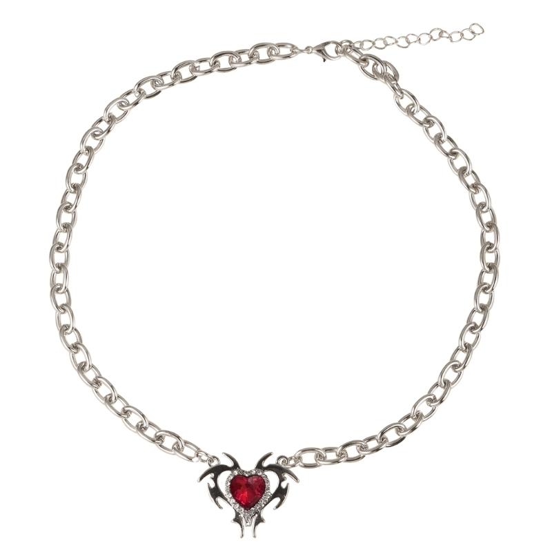 Zircon Love Pendant Necklaces Alloy Material Heart Pendant Necklaces Thick Chain Necklaces Party Jewelry Gift for Women
