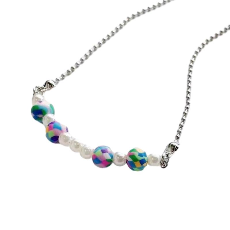 Bohemian Beaded Irregular Pendant Necklace Colored Round Bead High-Grade Crystal Necklace Summer Resin Necklace Jewelry