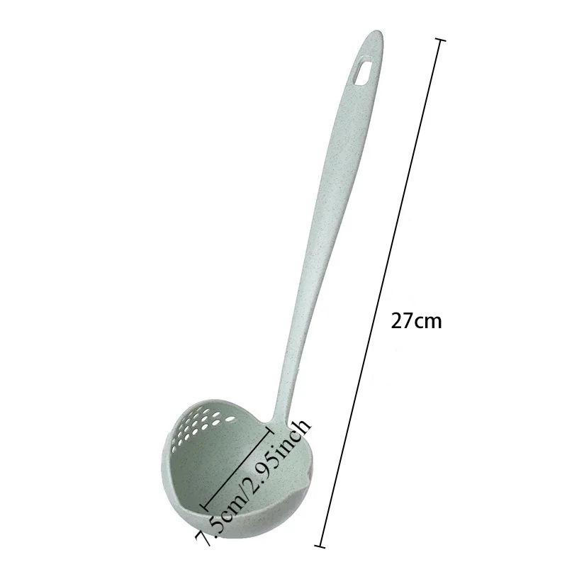 1pc Wheat Strain Soup Ladle High Temp Resistant Long Handle with Draining Holes Light Blue Hot Pot Cooking Utensil Kitchen Tool