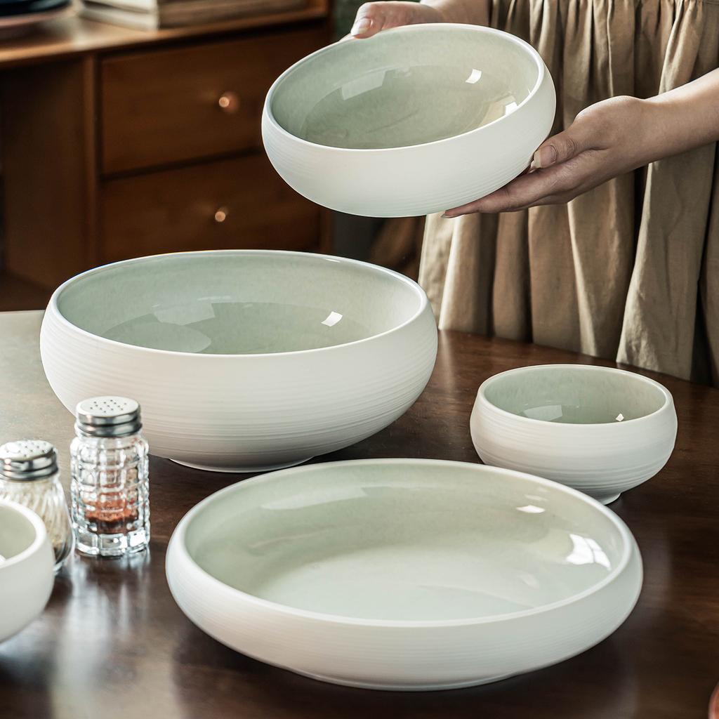 Solid Color Ceramic Bowl Tableware Set Combination Household Vegetable Plate Rice Bowl Round Large Bowl Fruit Bowl Salad Bowl