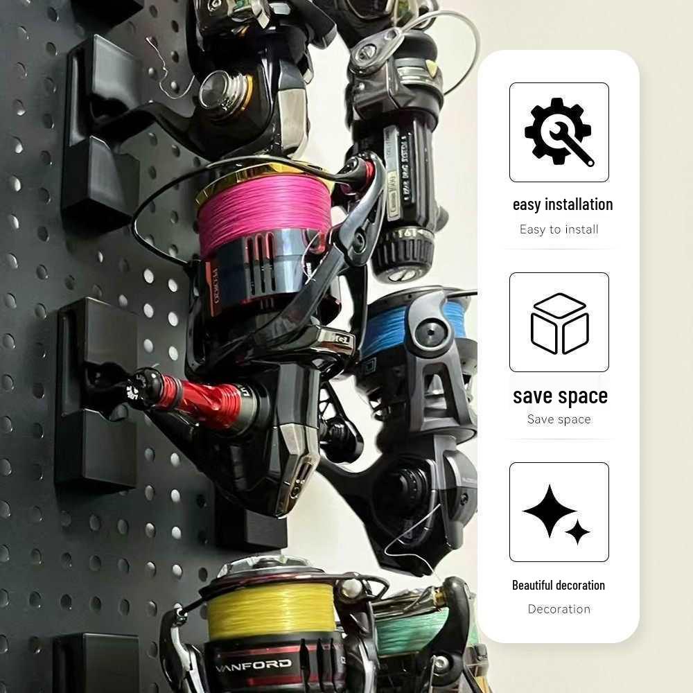 Dual-Use Fishing Reel Storage Rack for Baitcasting & Spinning Reels with Pegboard Accessories