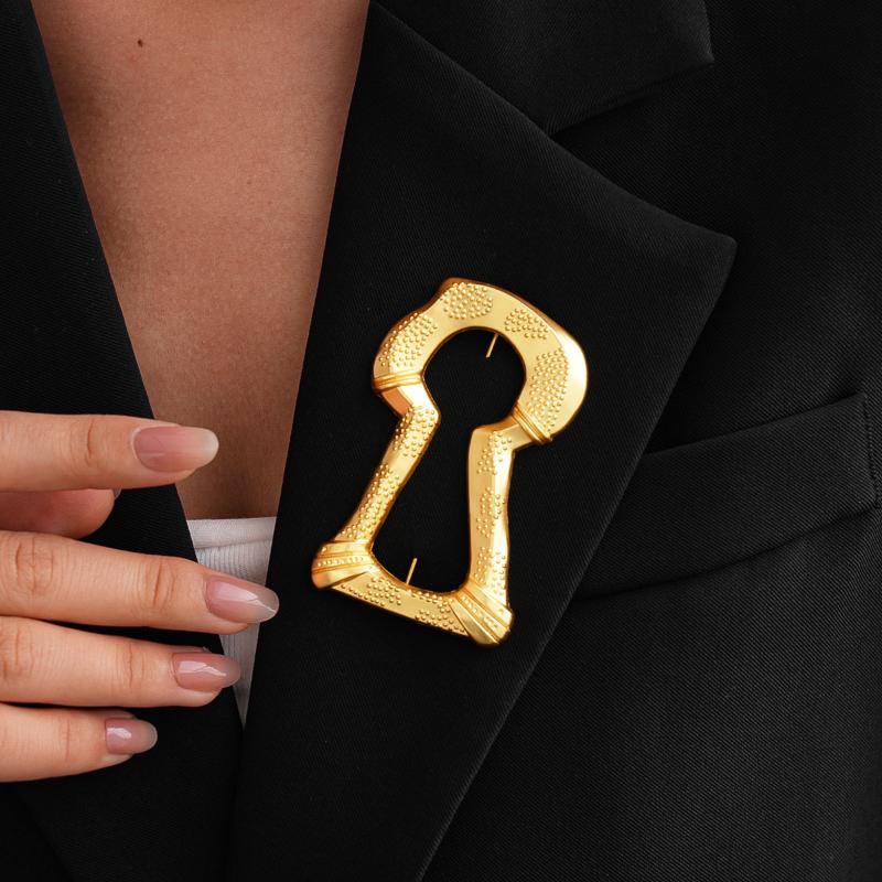 Elegant Hollow Keyhole Brooch For Women Trendy Fashion Jewelry Gift Commute Party Daily Wear Accessories