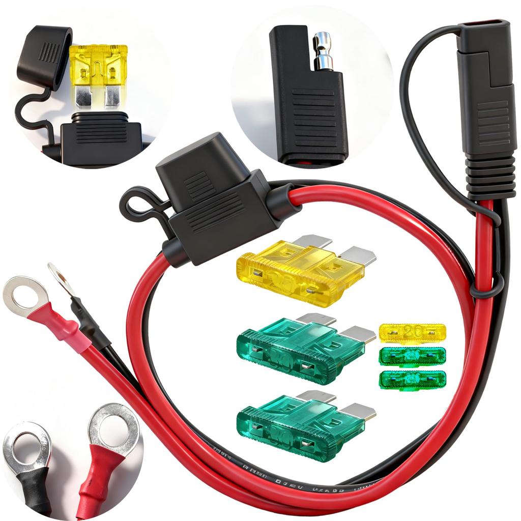• ♞Heavy Duty 10AWG Power & Efficiency: Featuring true 10AWG heavy duty SAE cable, this SAE quick disconnect harness minimizes power loss and delivers superior performance.Serves as a high quality SAE-ring terminal harness (with fuse) and reliable 10AWG SAE extension cord for 12V systems.