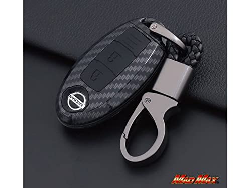 Carbon-like smart key case for Nissan cars X-Trail/Murano TYPE1 Black with key chain.