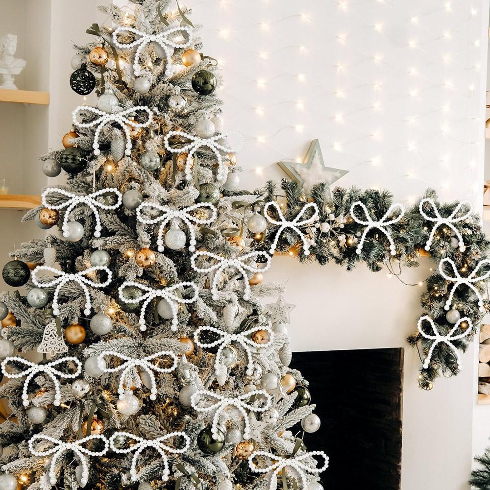 6/12pcs Imitation Pearl Bow Christmas Decoration Christmas Fringe Pendant For Holiday Party Girls Room Decor Supplies