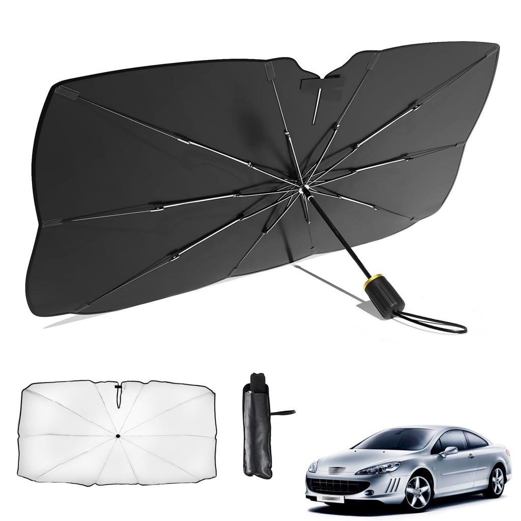 • [10 Sturdy Frame & Mirror Exposed Design] Applicable to Peugeot 407 Coupe 2004-2011; Adopts 10 fiber composite material bones, which effectively guarantees the stability of the product, and at the same time is flexible, quite sturdy and not easy to break.The umbrella rib fits perfectly on the car windshield and can block UV rays from every corner.The middle rod is made of ABS and is highly durable.There is a cut in the center of the top, so it won't interfere with the rearview mirror or drive recorder, so you can check the situation behind you with peace of mind.