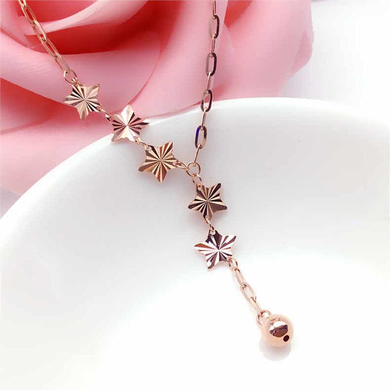Exquisite Russian 585 Rose Gold Plated Shining Star Necklace Purple Gold Star Tassel Necklace Bead Set Chain