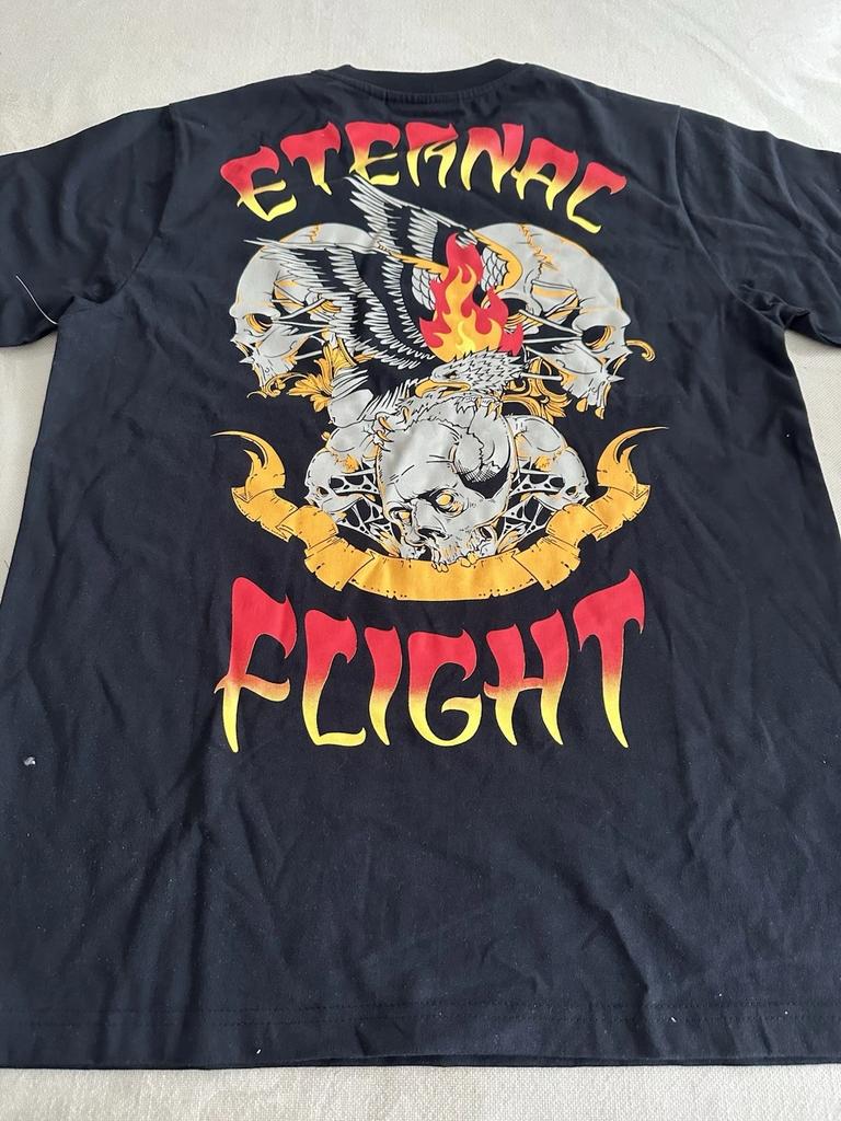 Skull Wings Flame & Eternal Flight Graphic Black T-shirt
