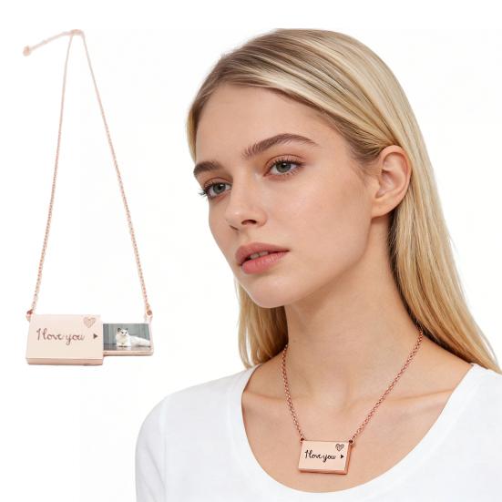 Crafted from high-quality alloy, this necklace offers a hypoallergenic and lightweight design for all-day comfort. Its durable construction ensures lasting shine and elegance. Featuring a unique pull-out pendant, it allows you to personalize by placing photos inside, combining creativity with simplicity.