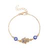This adjustable bracelet features a 17cm base chain with a 5cm extension, ensuring a perfect fit for various wrist sizes—from slender to fuller hands. Crafted with sparkling high-simulation zircon inlays, the intricate Hand of Fatima and Evil Eye designs shimmer brilliantly, contrasting beautifully with the blue enamel glaze.