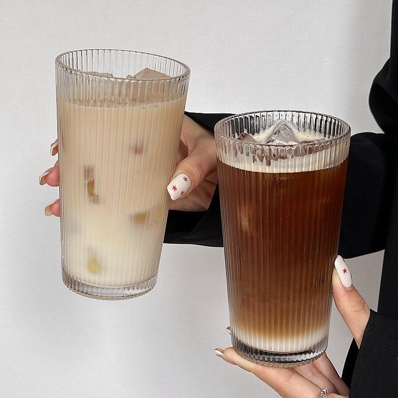 240ml/380ml Creative Cocktail Glass Vertical Pattern Glass Cup Juice Cup Latte Coffee Mug Home Water Cup with Lid Soda Water Cup