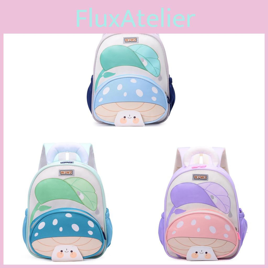This children's school backpack features a playful mushroom design, crafted from durable Oxford fabric with a polyester lining. providing ample space for daily essentials. The backpack supports breathable and load-reducing functions with air-cushion shoulder straps, ideal for preschool and kindergarten students. Its vibrant colors and cartoon patterns make it suitable for school use and everyday outings. Easy to maintain, wipe clean with a damp cloth to preserve its cheerful appearance.