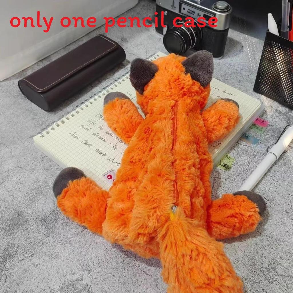 Cute Fox Pencil Case With Plush Material For Kids And Students