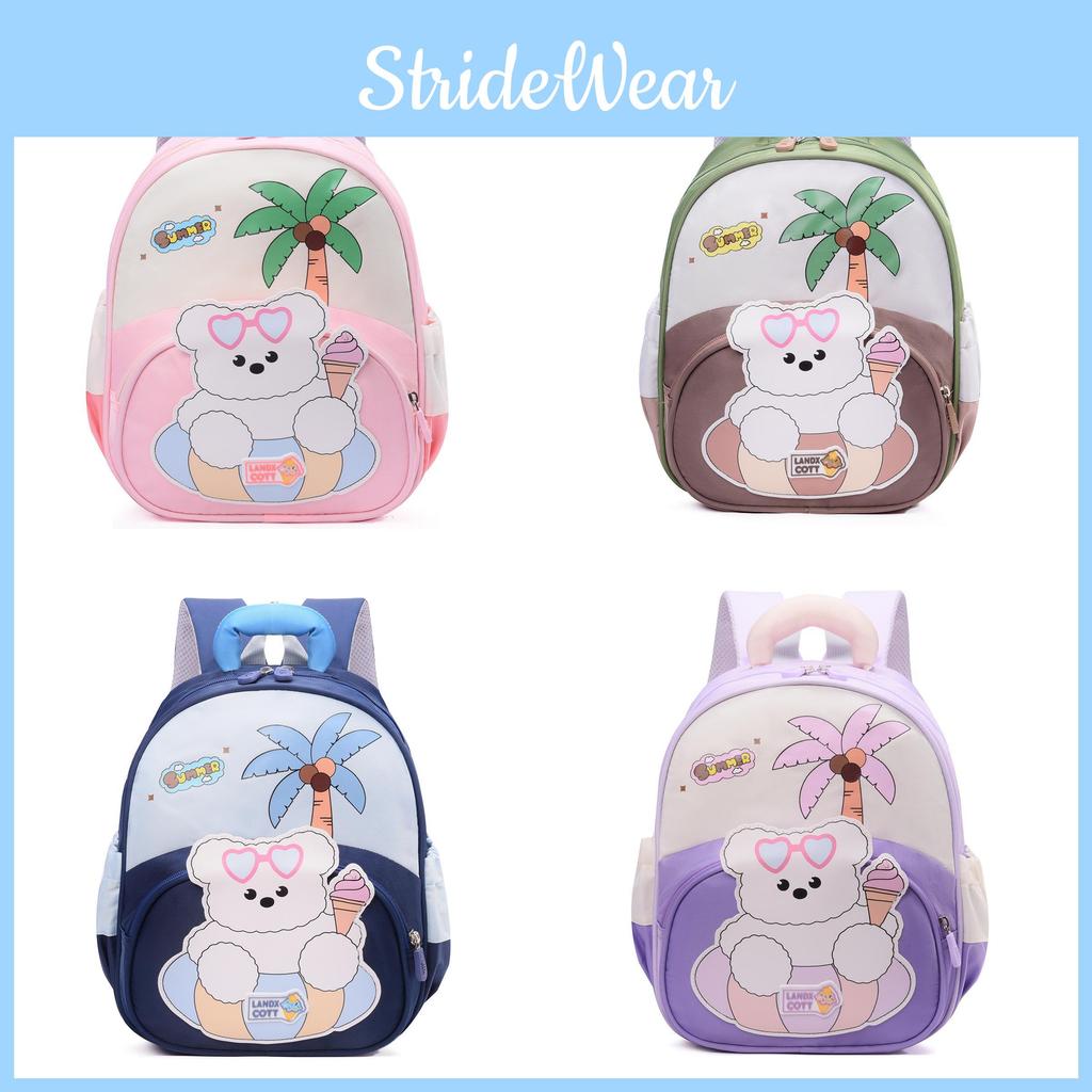 This children's cartoon bear backpack features a durable Oxford fabric construction with a breathable polyester lining, It supports lightweight carrying with padded air cushion shoulder straps, ideal for preschool and early school use. Easy to clean with a damp cloth, this backpack is suitable for school education and daily outings.