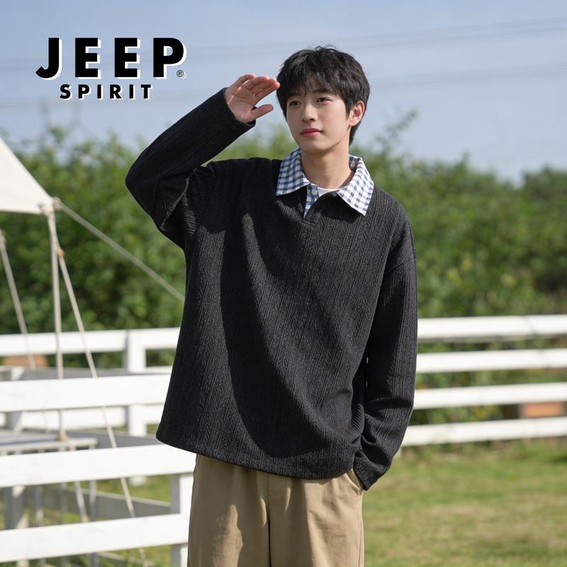 JEEP SPIRIT Men's Faux Two-Piece Long Sleeve Sweatshirt
