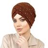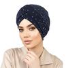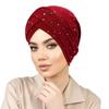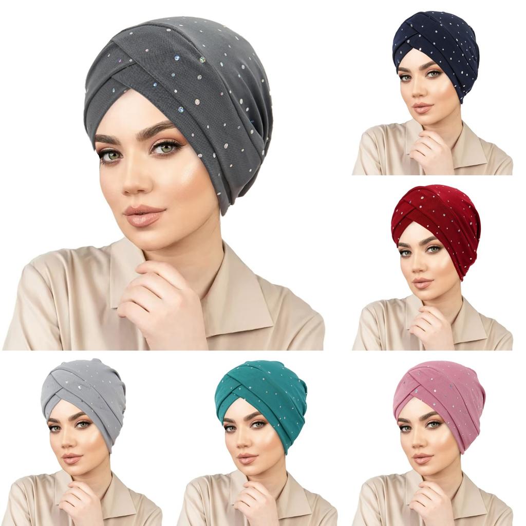 2025 New Fashion Forehead Cross Hijab Caps Hot Diamond Solid Color Turban Bonnet Muslim Ladies Head Cover