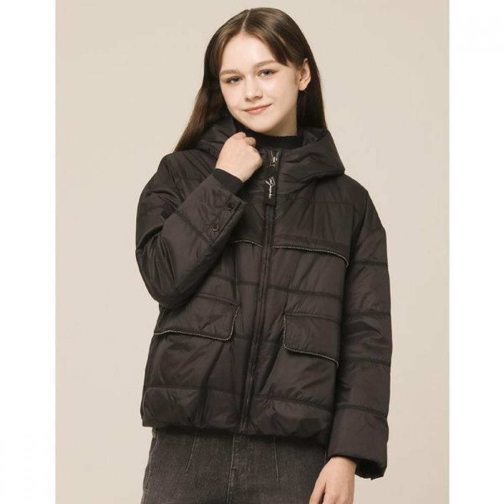 “This is a simple jumper featuring a double embroidered dog number detail on the pocket flap. The lightweight, heat-insulating sheen filling provides a comfortable fit, and the details add a natural accent to the style. It's a practical item suitable for everyday outerwear during the season.”