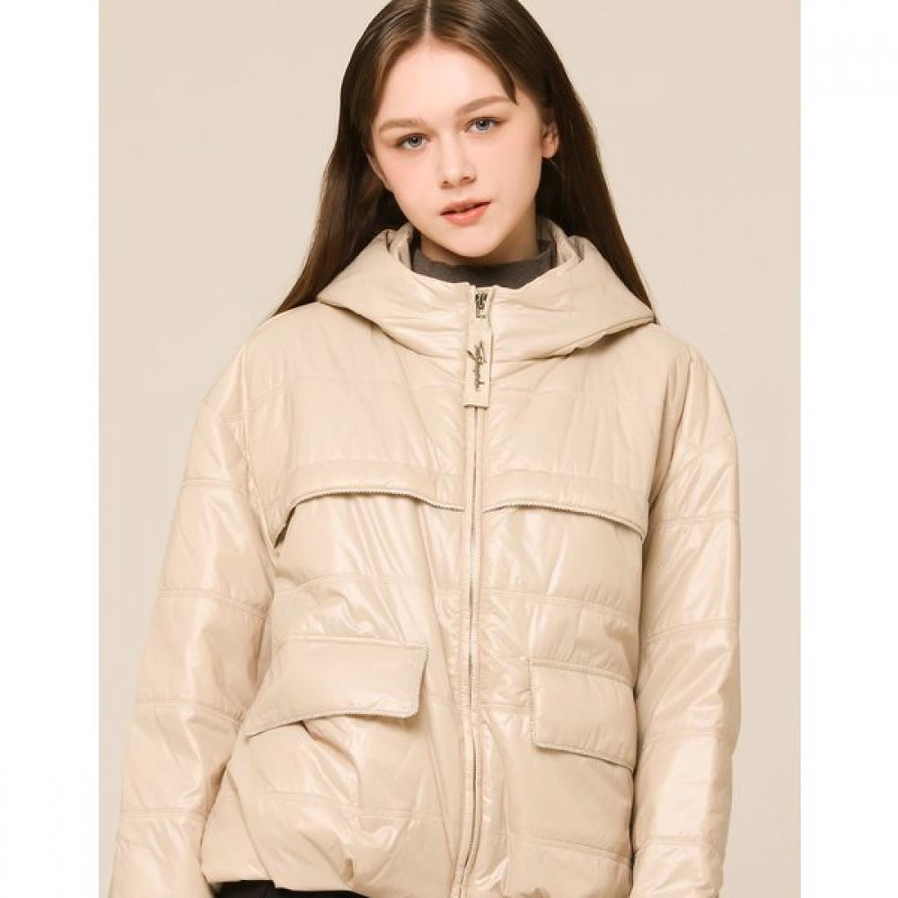 “This is a simple jumper featuring a double embroidered dog number detail on the pocket flap. The lightweight, heat-insulating sheen filling provides a comfortable fit, and the details add a natural accent to the style. It's a practical item suitable for everyday outerwear during the season.”