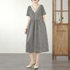 Short Sleeve Plus Size Cotton Lace Vintage Plaid New In Dresses for Women Casual Loose Long Summer Dress