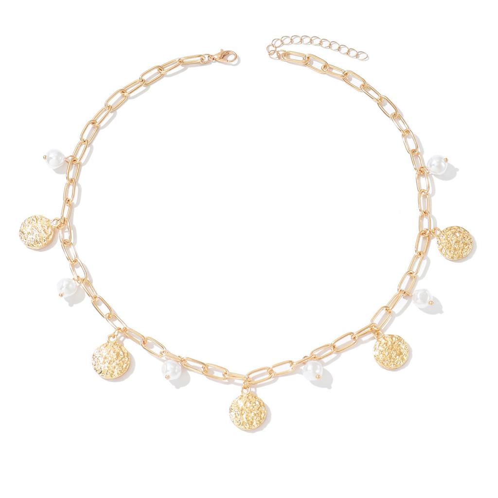 This fashion-forward necklace features a geometric, irregular round pendant crafted from durable alloy with a sleek electroplated finish. Its length ranges from 16.1 to 19.7 inches, supporting comfortable wear for daily stylish looks. Ideal for casual outings, office wear, or accessorizing trendy ensembles. Wipe clean with a soft cloth to maintain its shine.