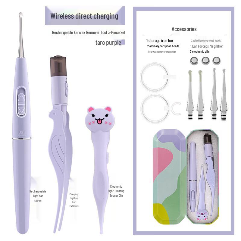 Rechargeable Luminous Ear Spoon & Tweezer Set for Kids