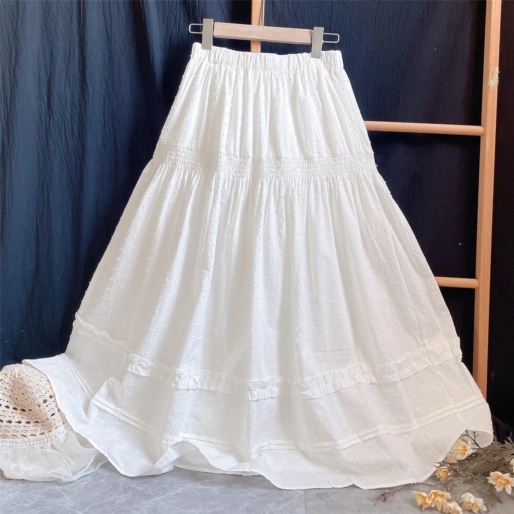 Japanese Mori Girl Summer Spring Women Princess Skirt High Waist Ruffles White A-Line Skirt Sweet Elegant Basic Skirts Womens