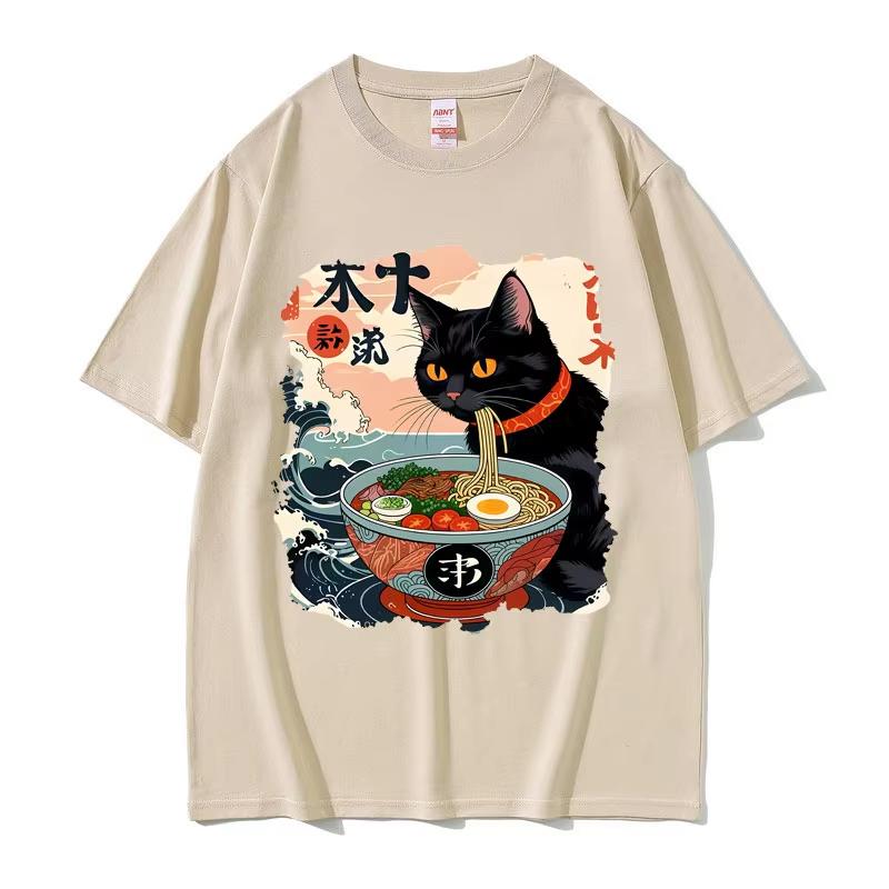 Anime Ramen Cat Funny Meme T Shirt Vintage Japanese Kawaii Noodle Cats Graphic T Shirts Men Women Fashion Casual Cotton Tshirts
