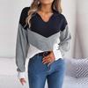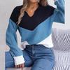 Casual Women Autumn Winter Knit Pullover Sweater Long Sleeve Polo Collar Contrast