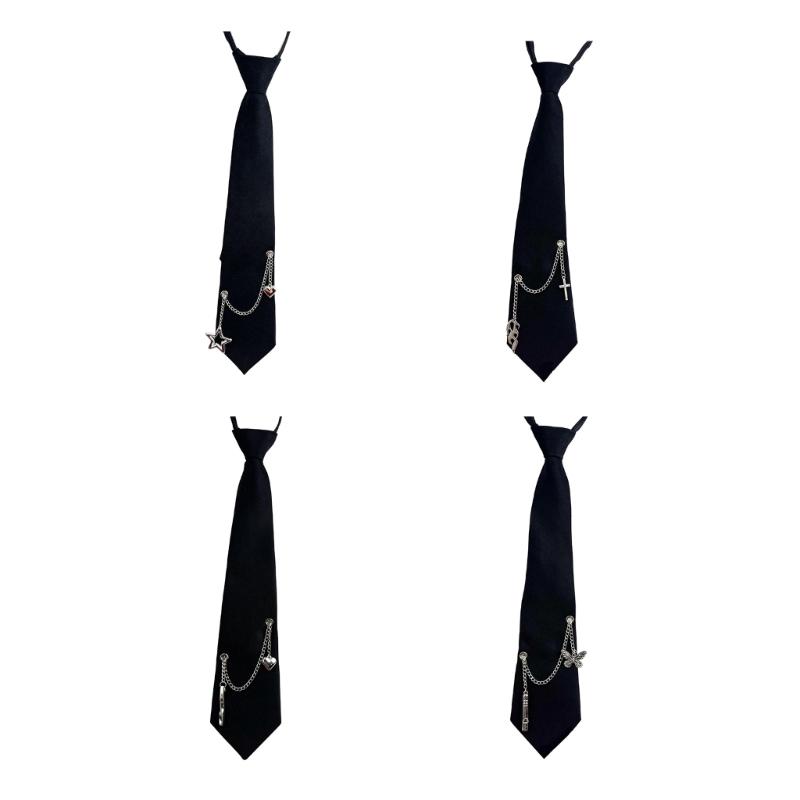 PreTied Women Necktie With Quick Zipper Design Fashion 2000s Punk Chain Decors Neck Tie For Business Event Gathering