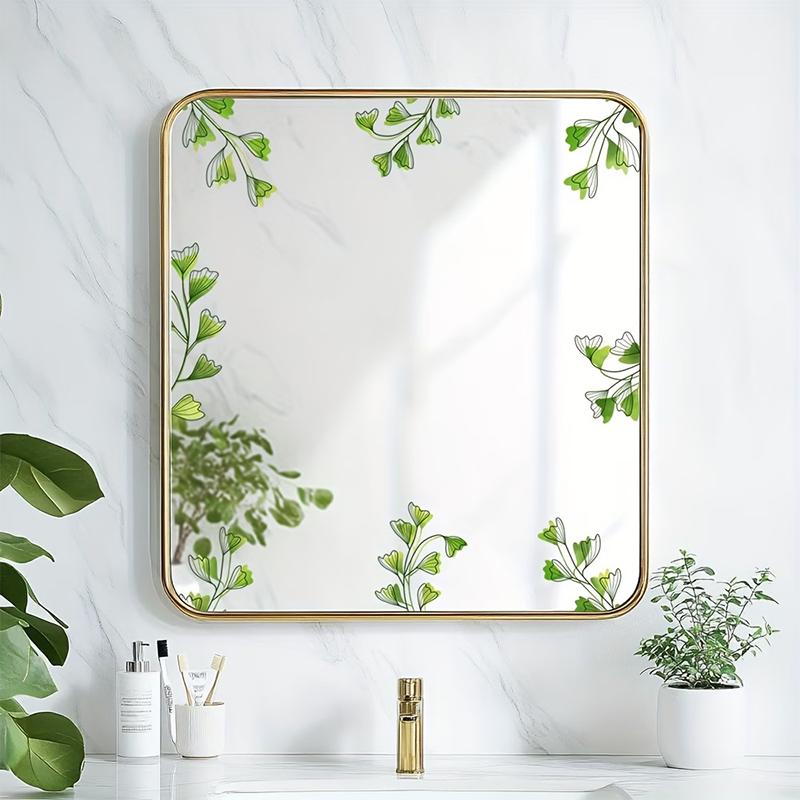 Spring Green Leaf And Floral Wall Stickers Glass Sticker For Shower Doors, Mirrors, Bathroom Glass Self-Adhesive Removable