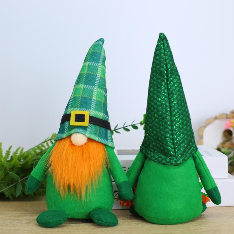 2Pcs Clover Faceless Doll Decoration St. Patrick'S Day Party Decoration Irish Green Clover Faceless Doll Festival Ornaments