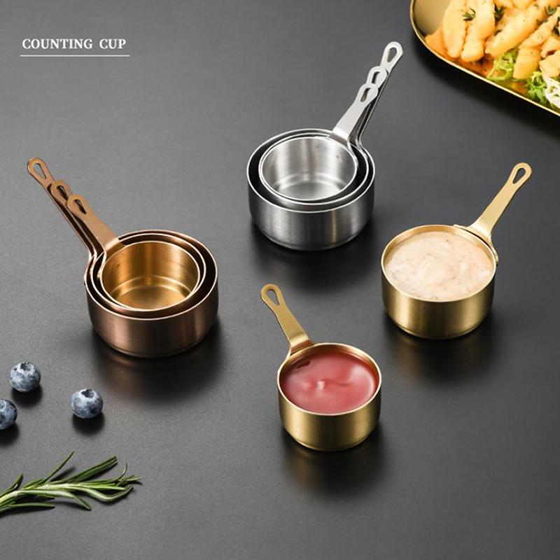 Measuring Cup Stainless Steel Sauce Cup Non-Rust 50/80/100Ml Seasoning Bowl With Handle Mini Sauce Pan Gravy