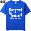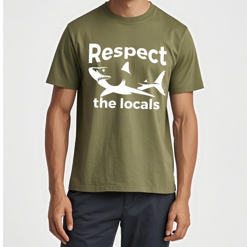 Mens Tshirt Cotton Shirt Unisex Summer Unisex T Shirt Respect The Locals Shark Design Short Sleeve Workout Round Neck Tops