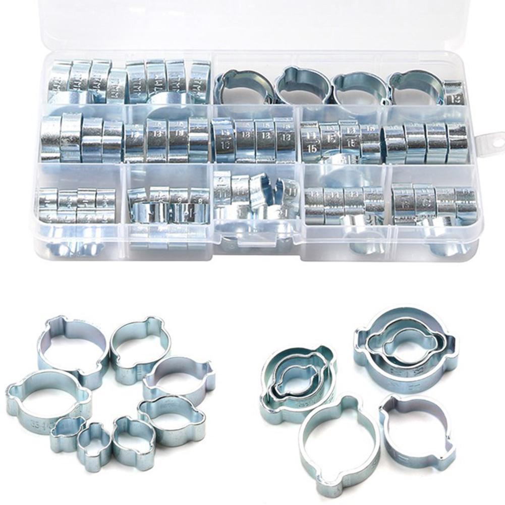 80pcs/set 5mm-20mm Hose Clamps Zinc-Plated Steel Double Ear Hose Clamps For Water Hoses Pipes Accessories