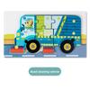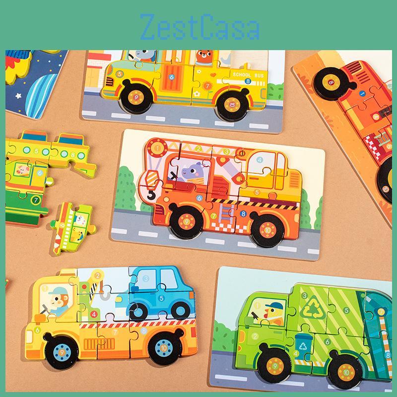 This wooden 3D puzzle toy enhances early childhood development with colorful, detailed vehicle shapes including fire trucks, construction equipment, and transport vehicles. Made of durable wood, is designed for children. Suitable for preschool educational activities, it promotes fine motor skills and spatial awareness. Wipe clean with a damp cloth for maintenance.