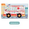 Color options: red, yellow, blue, green, and multi-color vehicle themes