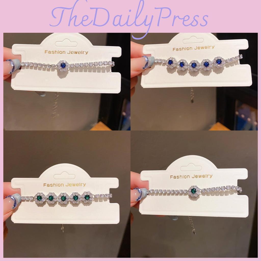 This fashion-forward bracelet features a floral design crafted from copper and plastic, adorned with sparkling zirconia stones for a touch of elegance.it showcases a vibrant silver finish with green or blue accents, supporting stylish daily wear. Ideal for gifting or accessories during summer seasons, it resists tarnishing and requires gentle wiping to maintain its shine.