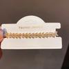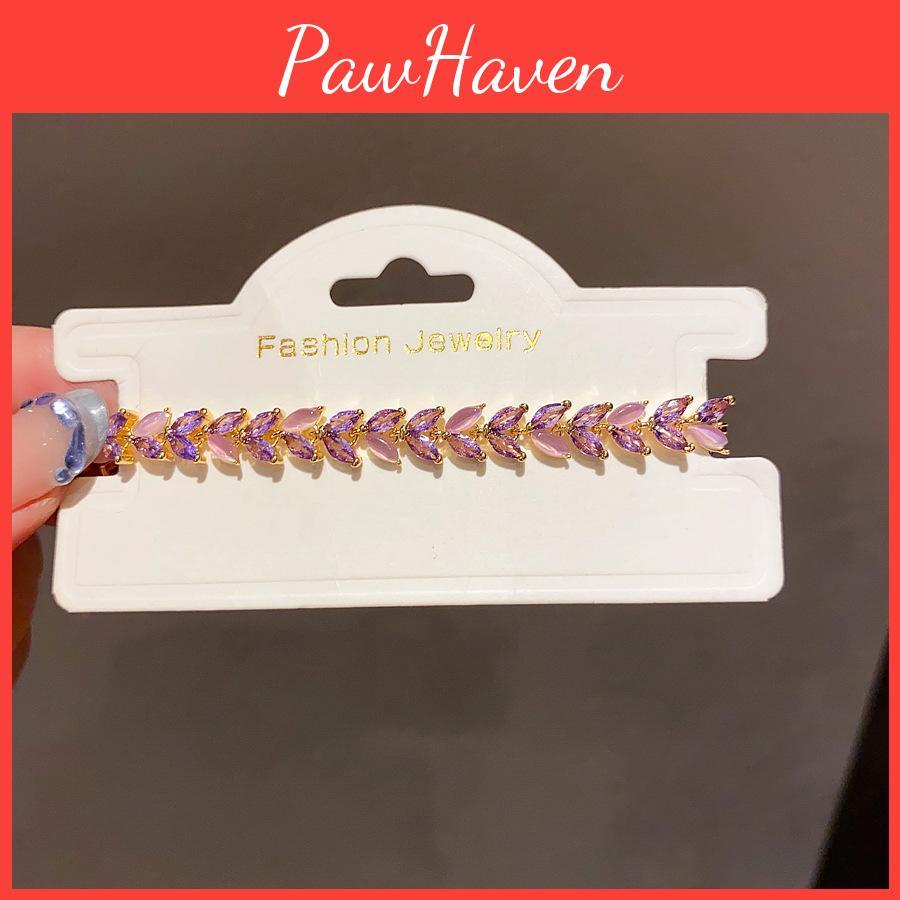 This fashion-forward womens bracelet features a floral design with wheat motifs, crafted from copper and accented with sparkling zirconia stones. It measures approximately 7 inches in length and is finished with a gold-plated surface for a refined look. The bracelets elegant style adds a touch of sophistication to daily or formal outfits. It is ideal for gifting on occasions like employee recognition events. To maintain its shine, wipe with a soft cloth periodically.