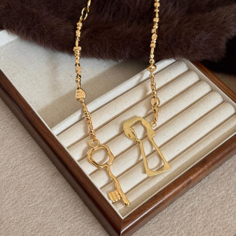 Exaggerated Irregular Beaded Chain With Alloy Key Lock Necklace For Women Jewelry Fashion Show Model Waist Accessory