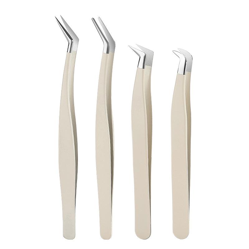 4pcs Eyelash Extension Tools Set Stainless Steel Tweezers, Angled Tweezers, Makeup Artist Supplies, Precision Lash Tweezers For Makeup Tool