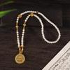 Chinese Style Pearl Necklace Hanfu Accessory Zinc Alloy Hollow Carved Pendant Long Chain Necklace