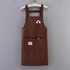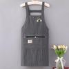 Kitchen Oil Resistant Apron Striped Zippered Linen-Cotton Apron With Straps Breathable Apron Women'S Dirt Resistant Work Clothes