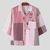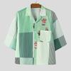INCERUN Summer Men Lapel Half Sleeve Striped Print Button Up Casual Shirts