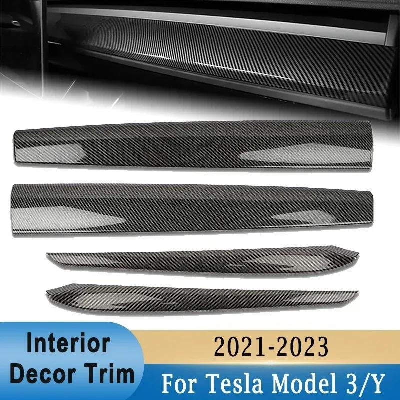 For Tesla Model 3 Model Y Dashboard Panel Stickers Center Console Decor Trim For Tesla Accessories ABS Decals Carbon Fiber Look
