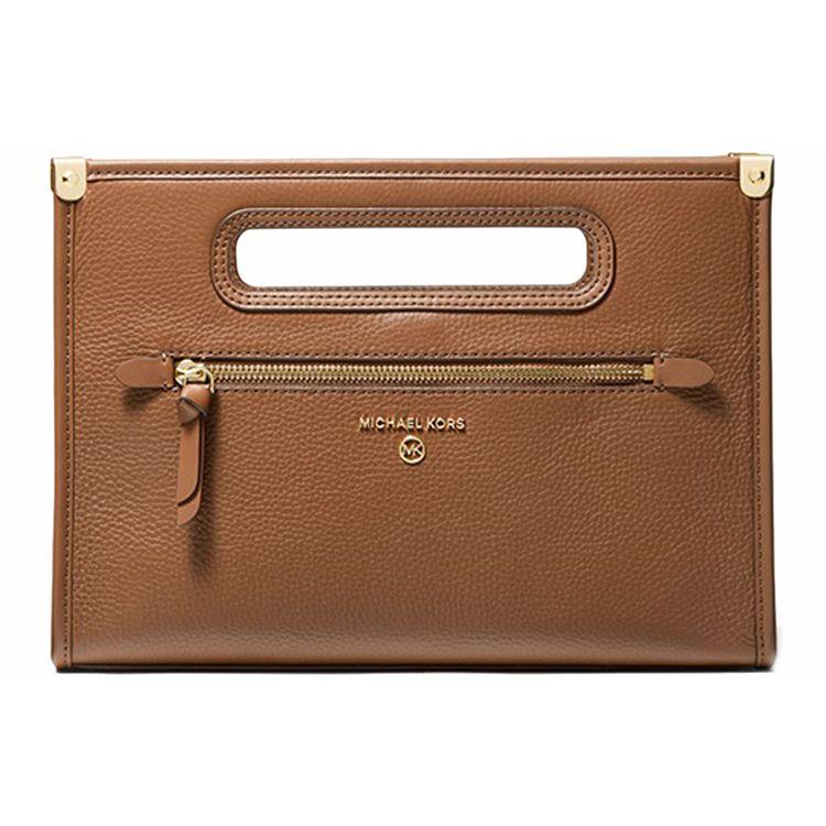 Michael Kors MK Jane Solid Color Zipper Fashion Simple Leather Clutch Coin Purse Commuter Tote Bag Large Women Handbags Brown 30T1GJBC3L-LUGGAGE