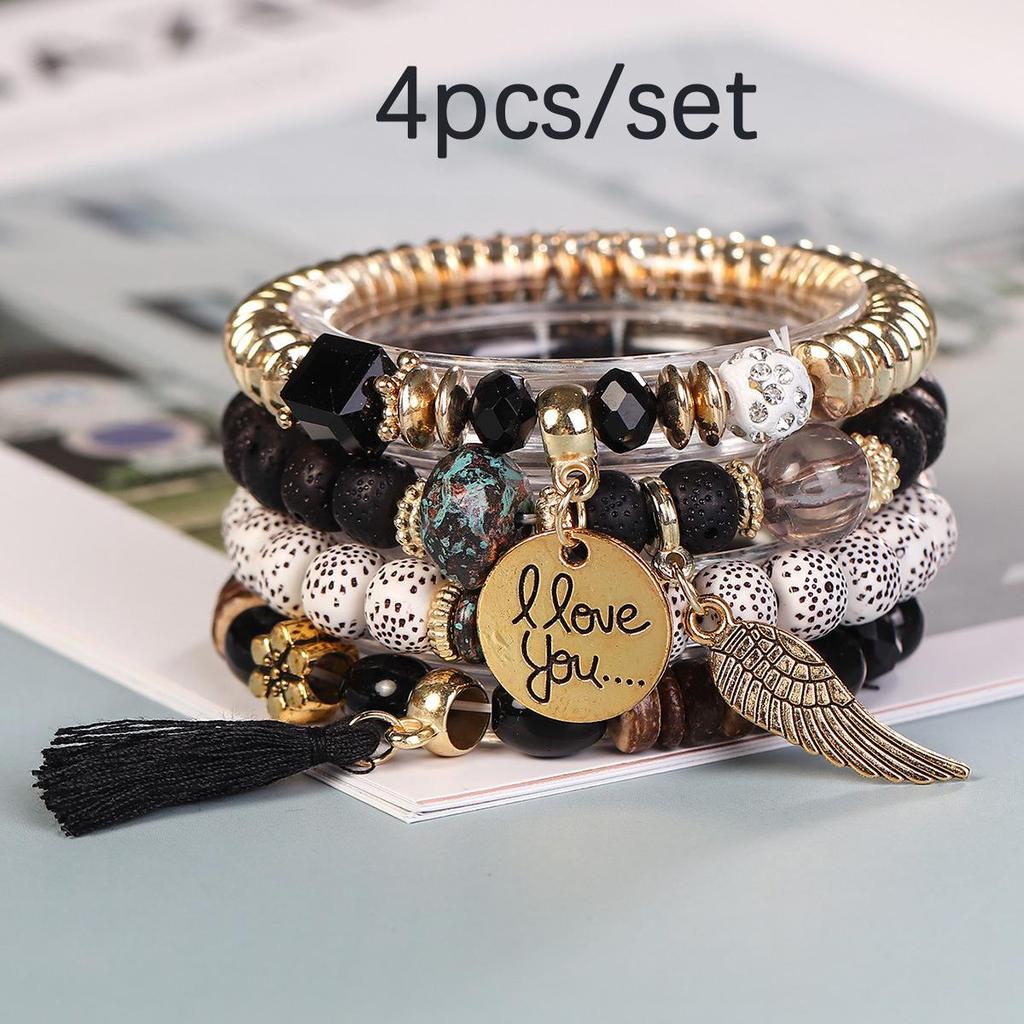 Bohemian Trendy Bracelet with Wings, 'I Love You' Tassel Pendant, and Retro Creative Design