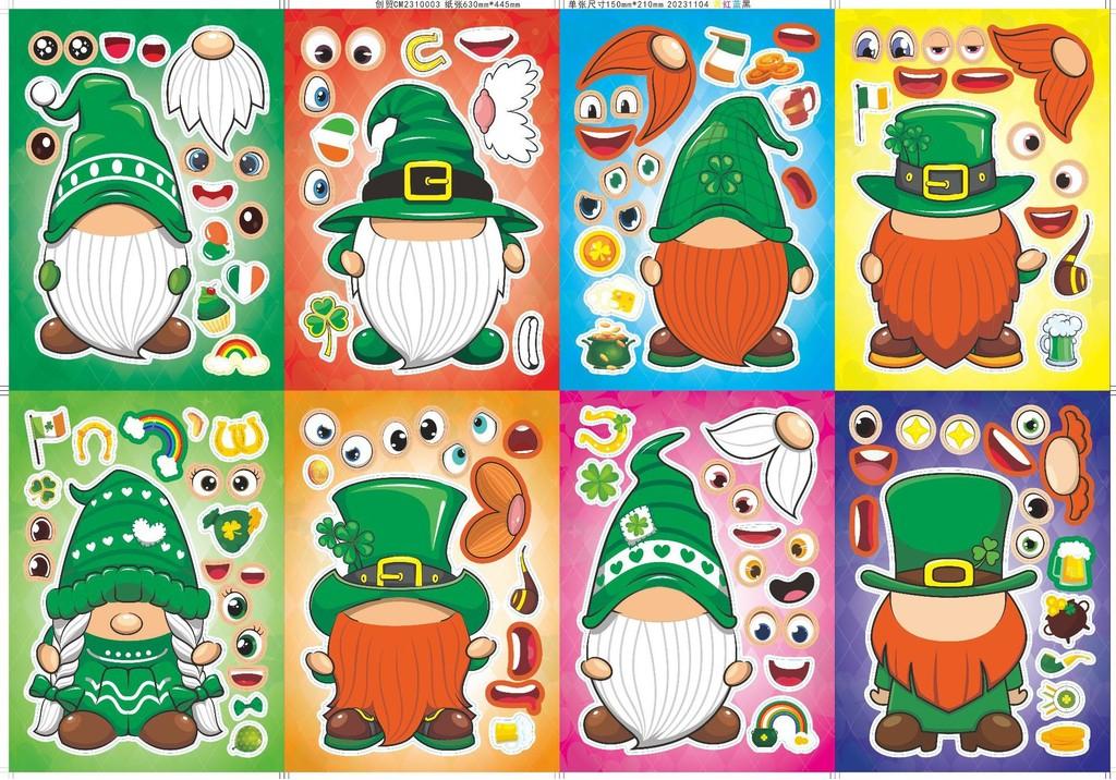 Adorable Cartoon Saint Patrick's Day Interactive Puzzles For Kids Diy Stickers Pack